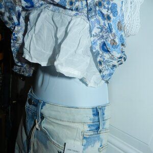Francesca's floral print crochet trim crop top Size Large 🆕📦⌚🏃💨⚡🚚