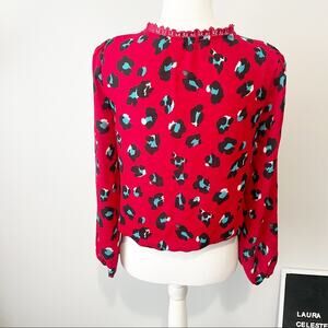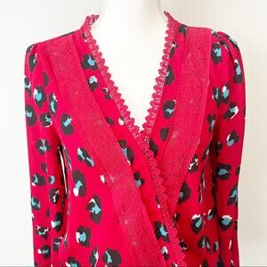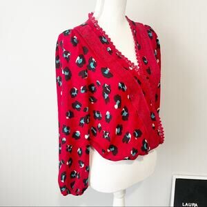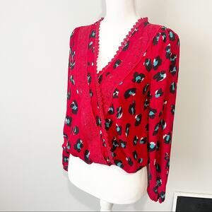 Francescas mi ami red leopard embroidered blouse top surplice neck small NWT