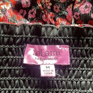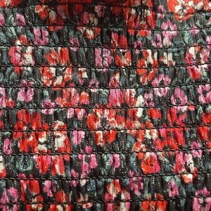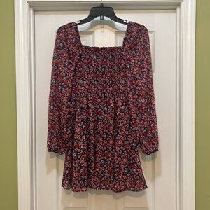 Francesca’s - red floral mini dress - smocked bodice front & back - square neckline - sheer puffed sleeves - fully lined except sleeves - red, pink, white & black - in like new condition - size M