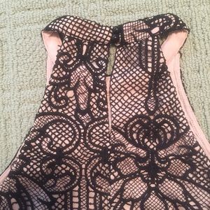 Francesca's black and nude lace two piece set. High neck crop top with A line midi skirt. Each piece has side zipper and lined in nude. New with tags size XS. This is a gorgeous set.