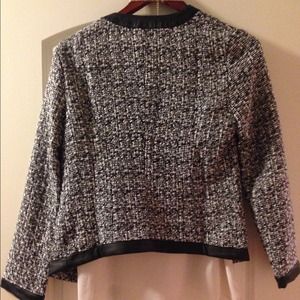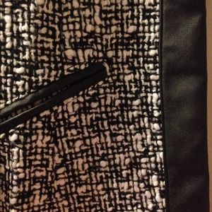 White and black pattern jacket, size S, with leather seamed on edges. Never worn. Great condition!