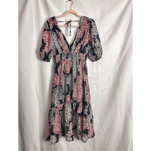Francesca’s Audrey Parks midi/maxi dress || size small, fits tts || stretchy area at waist that is very flattering || excellent condition, no wear || tie in back || comes to a few inches above my ankles (I’m 5’3) ||