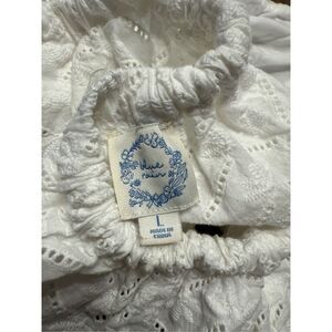 Francesca’s Blue Rain Bella Flutter Sleeve Bow Back Top Cottage Large White.
