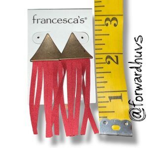 Francesca’s Brass Tone Triangle Red Suede Fringe Earrings