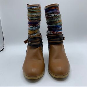 Such fun colors give an extra boho vibe to these faux leather heeled western styled booties. Barely used with minimal wear to heel and sole. 2.5” heel. 7” shaft. Please see photos for additional details.