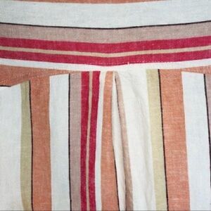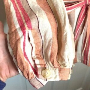 Francesca’s Coco & Jaimeson Brand Rosy Stripe Belted Romper Cream Pink Size Medium. Long Sleeves look good rolled up or down & shoulders slightly puffed. 100% Linen. Collar. Hidden Buttons. Button cuffs. Relaxed fit. Matching tie & belt loops. Festival Coastal Grandma Casual Comfy Girls Date Night Valentines Barbiecore Spring Summer Early Fall Great transitional season outfit. Gently used Excellent Preowned Condition. See last photo for measurements, they are apprx & on 1 side.