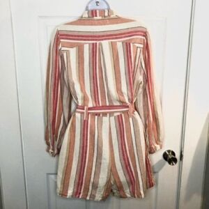 Francesca’s Coco & Jaimeson Brand Rosy Stripe Belted Linen Romper Cream Pink M