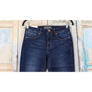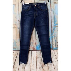 Francesca's Harper Women's Size 27 Blue Mid Rise Cross Step Hem Skinny Jeans