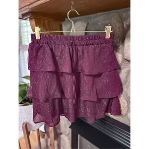 Francesca’s Miami frill skirt || size medium || fits tts || new condition || maroon color with lots of shimmer || stretchy waistband ||