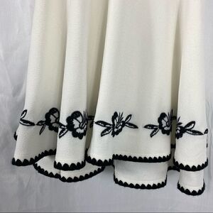 Ruffle top and double ruffle at bottom embroidered with black flowers. Measurements are Approximate