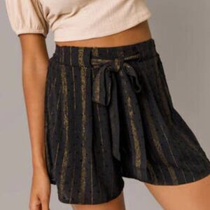 Francesca’s Wendy Lurex Black and Gold Drawstring Shorts Size XS