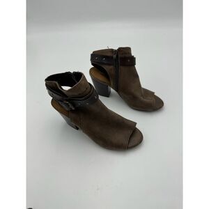 Francesca's Women's Size 7 Brown Suede Peep Toe Buckled Block Heels