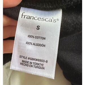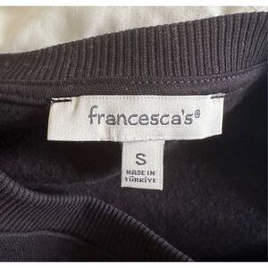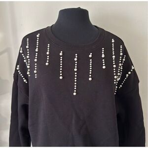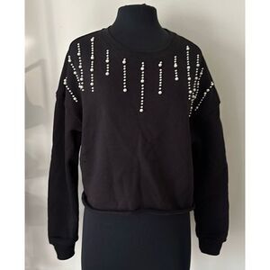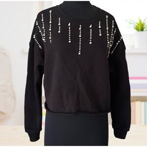 Francesca’s black crewneck sweatshirt with pearl detail