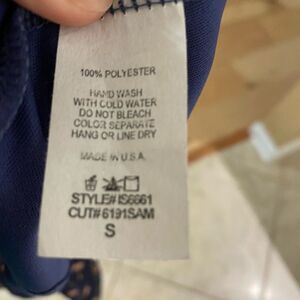 Francesca skirt in navy blue with underlining and pink polka dots! Size small! Waist measures 14 inches across laying flat. Waist has a zipper and this skirt is from a smoke free home. Excellent condition!