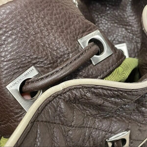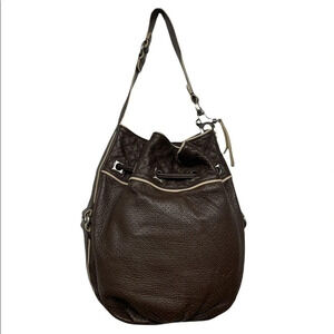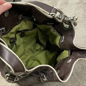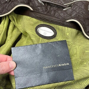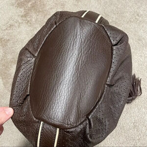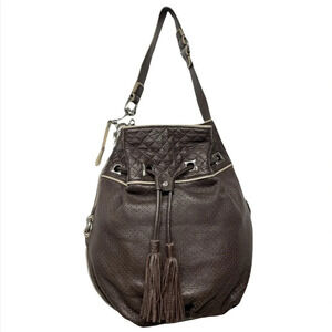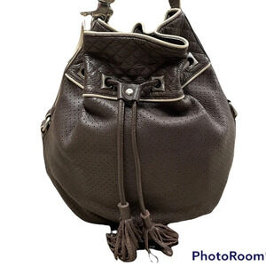 Francesco Biasia Brown 100% Calf Leather Perforated Fringe Bucket Bag Hobo