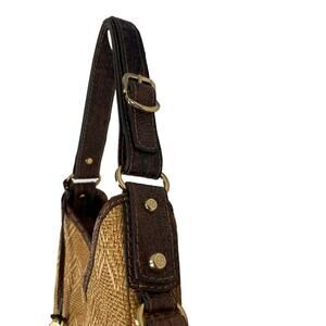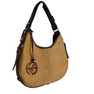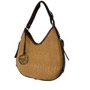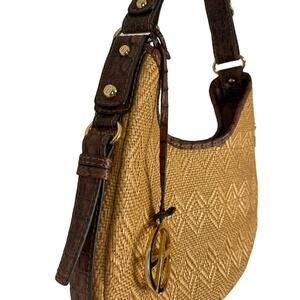 Francesco Biasia Straw Vegan Leather Trim Hobo Purse