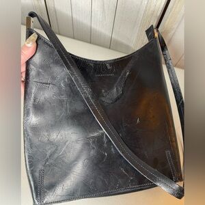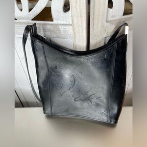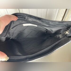 This Francesco Biasia shoulder bag is a stunning addition to any wardrobe. With a solid pattern and made from textured leather, it is a medium-sized satchel with zip closure. The black exterior is paired with black hardware and a black leather handle/strap, giving it a sleek look. The bag measures 11 inches in width and 10 inches in height.