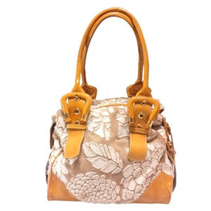 Francesco Biasia Yellow Leather and Fabric Patchwork Satchel Hobo Should…