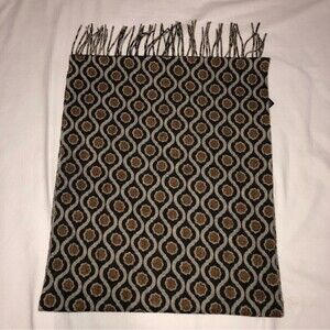 Unique lana wool blend scarf with fringe. Reversible has zebras on one side and geometric print on the other. Good pre-loved condition with slight flaw. See last picture. It’s not a hole but a worn spot. Does not affect wear and blends in. Length is 66” not including the fringe.