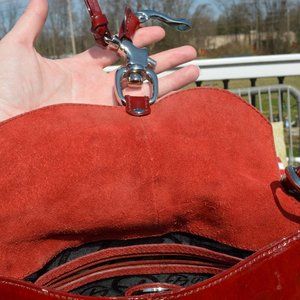 Francesco Biasia ruby red patent leather purse with suede interior front flap