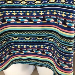 Colors: blue, red, greenish yellow, aqua, white and black