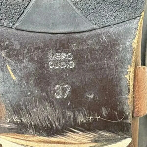 The Francesco Morichetti riding boots are designed for women, featuring a knee-high shaft style in Western, Equestrian, Leather. Made in Italy, these boots are crafted from genuine leather with a distressed look and adjustable buckle straps. They have a round toe and a pull-on closure, suitable for casual occasions. The boots are brown in color and fit or EU size 37. The outsole is also made of leather. These pre-owned boots are ideal for casual outings or leisurely activities.