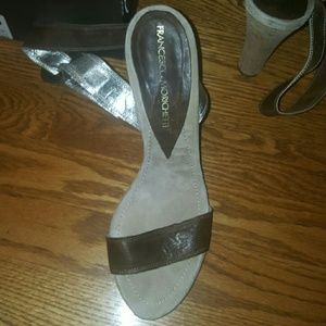 gorgeous Francesco Morichetti Brown twist ankle strap heels. size 40 - not 100% sure what that converts to but I'm a size 9 and they fit perfectly! about a 4.5" heels, really nice well Italian made shoes.