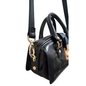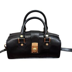 Francesco Rogani Black Leather Structured Handbag Gold Hardware Top Handle Crossbody Purse Elegant Chic