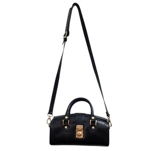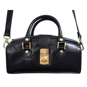 Francesco Rogani Black Leather Structured Handbag Gold Hardware Top Handle Crossbody Purse Elegant Chic