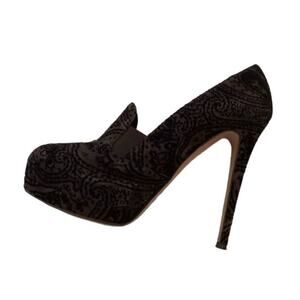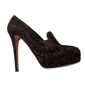 Gorgeous Suede Leather Platform Pumps with a beautiful Paisley Design.