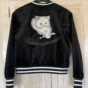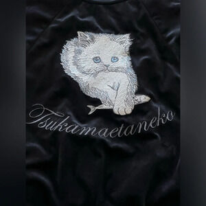 A Sukajan with a large embroidered pattern of caught cats. Made by designer Franche Lippee
