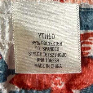 Adorable Miami dress with floral design. White base with red and blue flowers. Long sleeves. Perfect for casual outings.