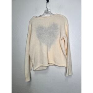 Stay cozy and stylish with this adorable Francesca's sweater! This cream-colored crew neck features a cute black heart design. Perfect for adding a touch of sweetness to your everyday look.