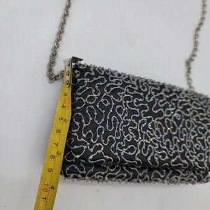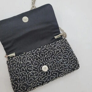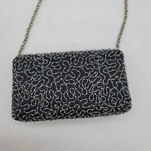 Franchi Vintage Black Satin Beaded Jeweled Envelope Chain Strap Mini