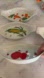 Individual Serving Dishes Carrot,Peas,Corn and Tomatoes original Sticker On a few , Bottoms have Paint Streaks From Fact! 8.5 x 4