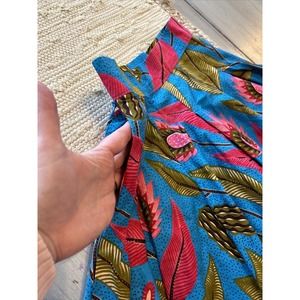 Francis + Benedict Blue Pink Leaves Pleated Skirt African Sz XS Side Zip Pocket