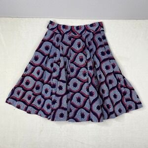 Francis + Benedict Midi Skirt White Pink Blue Bold Print Cotton Pleated X-Small