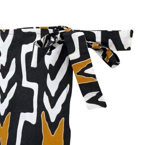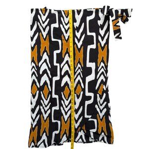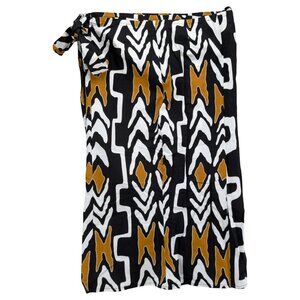 Francis Benedict Midi Wrap Skirt Black Gold African Wax Print Cotton Size S