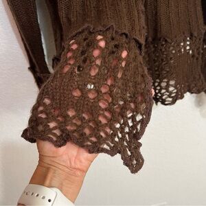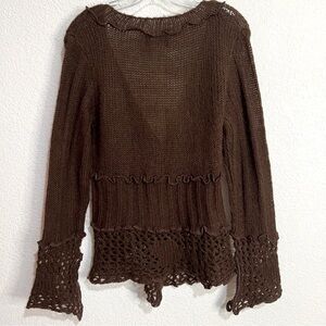 Francis Montreal Such Brown Crochet Front Wrap Whimsical Boho Cardigan Medium
