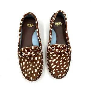 Francis Valentine Charlie Calf Hair Loafers In Chocolate Brown & Oyster Spotted Calf Hair Leather Driving Moccasins Brown Shoes
