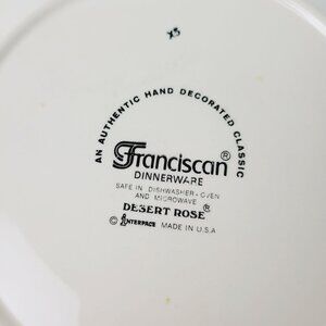 Disclaimer: Maker’s Mark photographed may not match exactly what you received. Some marks may be lighter or faded, also Franciscan had Maker’s Marks with different numbers or letters. However, your item WILL be from the same date range listed in the description and title and will be from Franciscan Desert Rose USA collection.