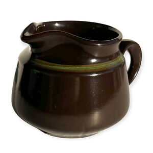 Franciscan Madeira Vintage 1960s, Mid Century Modern, Brown with Green Stripe Earthenware Creamer Pitcher