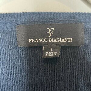 Franco Biagianti Mens 100% Merino Wool Blue V Neck Sweater Size Large. Good used condition no flaws