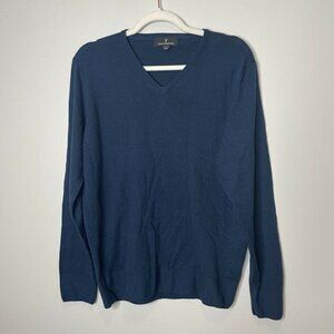 Franco Biagianti Mens 100% Merino Wool Blue V Neck Sweater Size Large