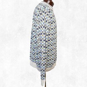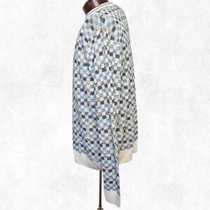 Franco Danti Italy Blue Green Checkerboard Cotton Blend Crewneck Sweater-Mens L