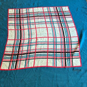 Franco Ferrari Grid Plaid Window Pane Scarf Silk Vintage Turquoise Blue Square