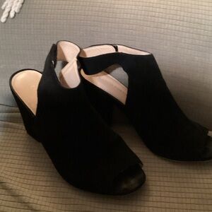 Chic black heeled boots with peep toe design. Ideal for stylish outings.
