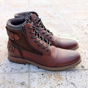 Franco Fortini Dalton men's lace-up front boot with side zip closures and dual buckle accents, size 11.5. Good used condition.