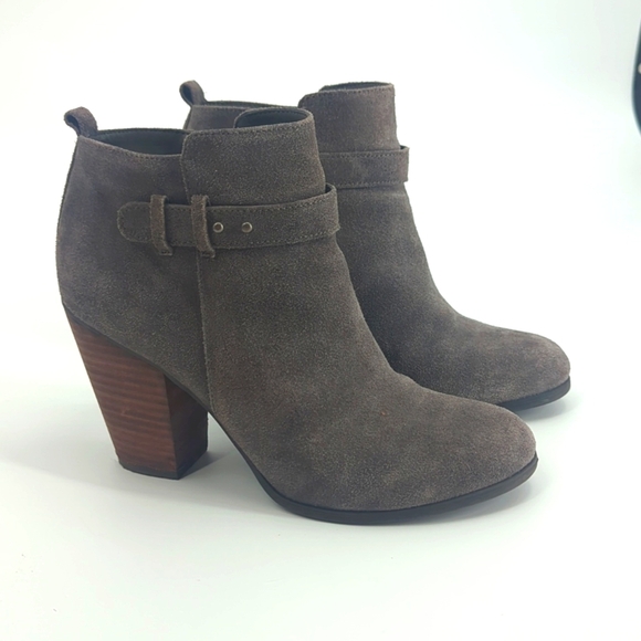 Franco Fortini Gray Suede Block Heel Booties Buckle Ankle Boots 6.5