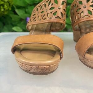 Franco Fortini Leslie Tan Brown Cutout Studded Cork Wedge Sandals 8.5